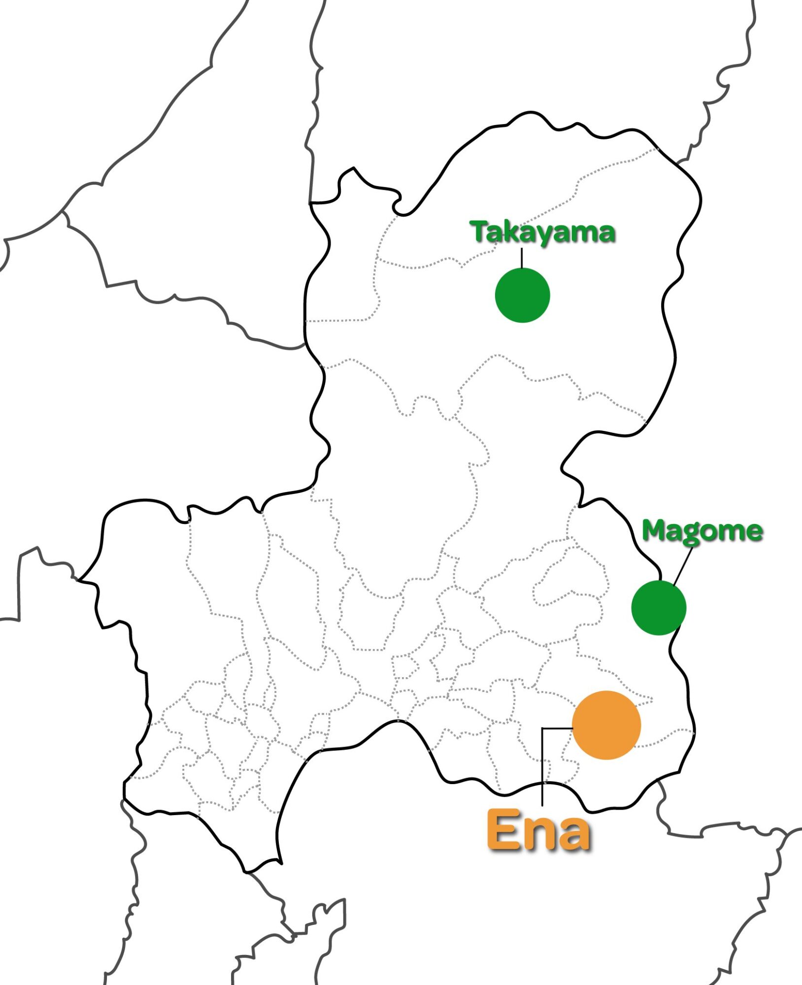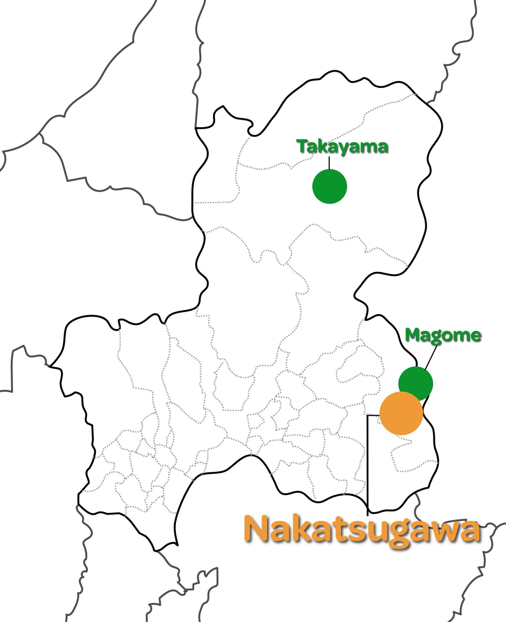 中津川市は、岐阜県東端、長野県と接する位置に広がる、木曽山系と恵那山地に囲まれた高原のまち。標高は300〜1,900mと高低差があり、急峻な山岳地形が美しい渓谷や清流を生み出しています。代表的なのは木曽川水系の中津川や付知川。澄んだ水は“東濃ひのき”を育て、林業文化と木工の技を今に伝えています。